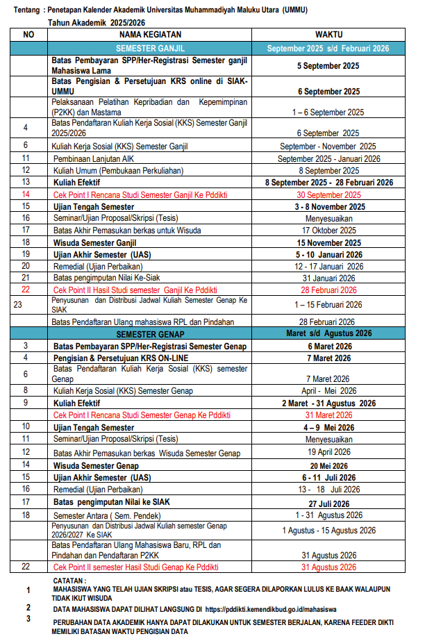 Jadwal kegiatan akademik Universitas Muhammadiyah Maluku Utara.